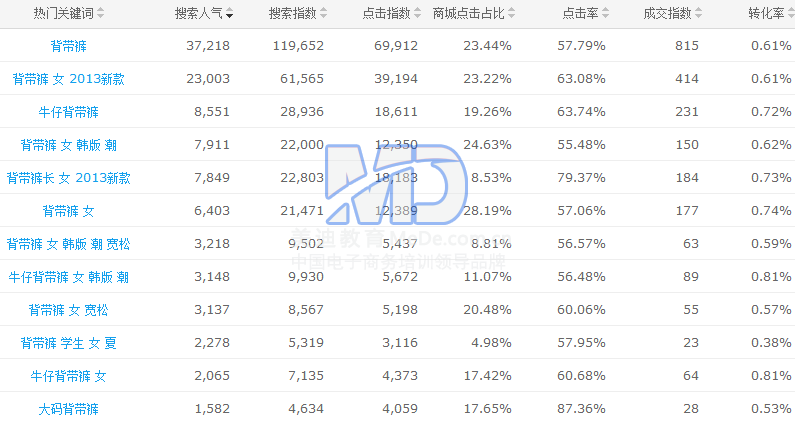 大家都知道,标题中最多可以放60个字符,30个汉字,如何利用仅有的30个汉字去覆盖到最大的流量范围就是尤为重要的了。不要留有空格,不要重复堆砌。应充分考虑每个关键词前后排列位置是否合理通顺。可读性要强一点,例如:牛仔背带裤、背带裤女2013新款、背带裤女宽松、背带裤女韩版潮。将会组成:背带裤女2013新款牛仔背带裤女宽松韩版潮【仅为示例参考,标题为完整】